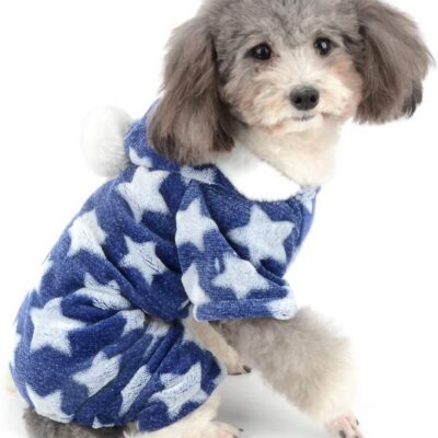 Zunea Small Dog Pyjamas Jumpsuit Puppy Hoodie Coat Clothes for Dogs Girl Boy Winter Warm Pajamas Outfits Overall Jumper Soft Pet Apparel Blue XXL (Pls Check the Size of Chest and Back Before Order)