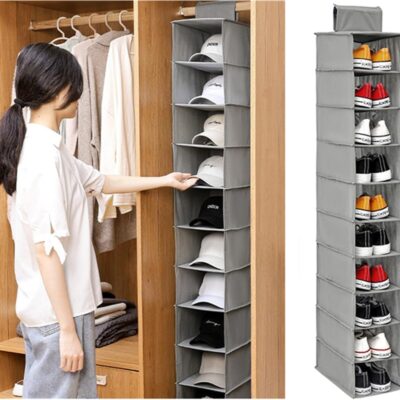 Beenle-Icey 2pack Shoe Organizer 10 Pockets Hanging Shoe Rack Space Saving Shoe Hanger Non-woven Household Sneakers Storage Shelf Clothes Hat Handbag Holder for Bedroom Closets Wardrobe