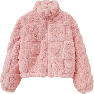 Xumplo Girls Fleece Jacket Tween Girl Heart Print Fuzzy Warm Coat Children Zipper Outerwear Kids Winter Clothing