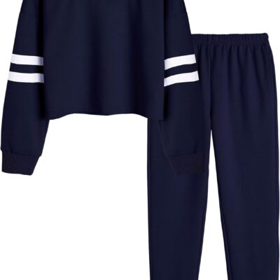 Arshiner Girls Tracksuit Set Kids 2 Piece Loungewear Activewear Outfits Girls Crop Tops Hoodies Long Sleeve Fashion Sweatshirts and Sweatpants 5-13 Years