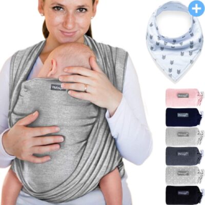 100% Cotton Baby Wrap Carrier – Light Grey – Baby Carriers for Newborns and Babies Up to 15 Kg – Includes Storage Bag and Bib – Manufactured with Love by Makimaja (Plain)