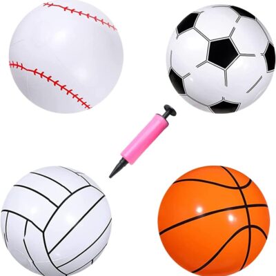 PIUMOJ Sports Ball Toys, Inflatable Sport Balls Set, Kids Sports Balls, Outdoor Sport Beach Balls, Football Volleyball Basketball Baseball with Pump 5 set