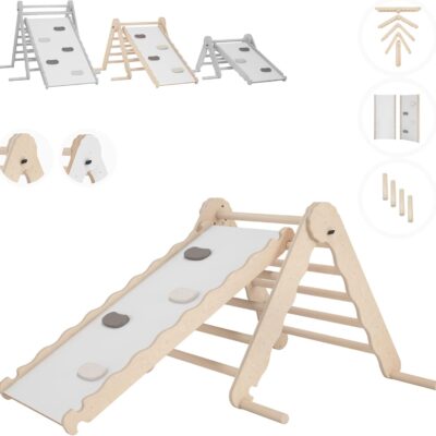 MAMOI® Indoor climbing triangle with slide for kids, Baby climbing frame, Wooden toddler gym for children outside and outdoor, Frames and slides, toys for toddlers