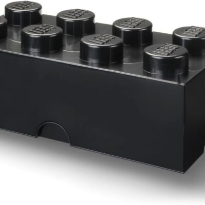 LEGO Storage Brick 8 Knobs BLACK – Stackable Plastic Storage Box with Lid for Kids and Adults, Ideal Desk Organizer and Toy Box – 12.1L Capacity