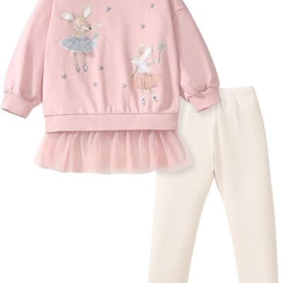 TCWWBB Girls Kids Outfits Clothes Set Toddler Cute Unicorn Bunny Bowknot Birthday Print long Sleeve Cotton Shirt jumper Dresses Tops Leggings Trousers Pants 2 Piece Clothing Set Age 1-7 Years Old