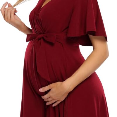 KOJOOIN Womens Maternity Dress Nursing Dresses Pregnancy Dress Breastfeeding Dress 3/4 Sleeve A-Line V-Neck Dress