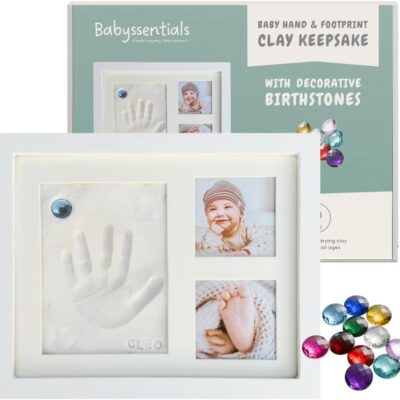 Babyssentials | Baby clay hand and footprint kit photo frame keepsake with decorative birthstones