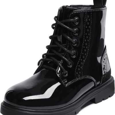 DREAM PAIRS Kids Girls Black Patent Zip Lace Up School Ankle Boots