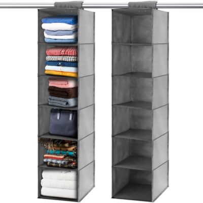 Chostky 2PCS Hanging Wardrobe Organiser, 6 Shelves Hanging Storage Organiser, Hanging Storage Shelves Clothes Organiser Closet Storage Hanging Shelves Unit for Bedroom Home