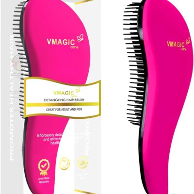 Detangling Brush – glide the Detangler Brush through Tangled hair – Best Brush/Comb for Women, Girls, Men & Boys – Use in Wet and Dry Hair (Rose Red)