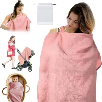 Breastfeeding Cover Nursing Breastfeeding Cover Muslin Cotton Soft Breathable Nursing Cover Adjustable Strap Breast Feeding Coverall Breast Feeding Privacy Cover Full Coverage in Public(Pink)