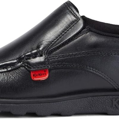 Kickers Boy’s Fragma Slip on Moc Toe Comfortable Leather Shoes, Black