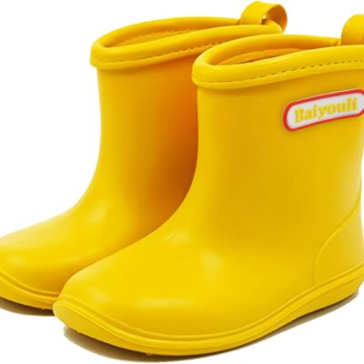 BAIYOU Baby Rubber Rain Boots Kids Waterproof Wellington Wellies for 1-6 Years
