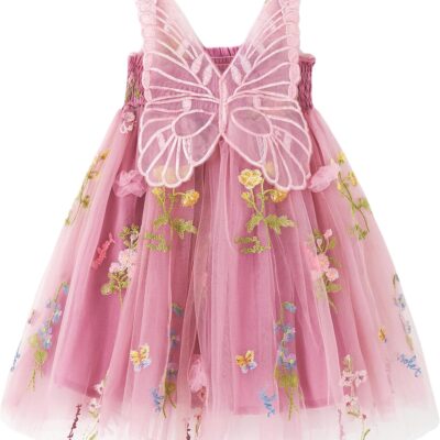Miipat Baby Girl Dress Tulle Butterfly Toddler Girls Sleeveless Embroidery Floral Princess Dresses Wedding Party Birthday Dress for Girl