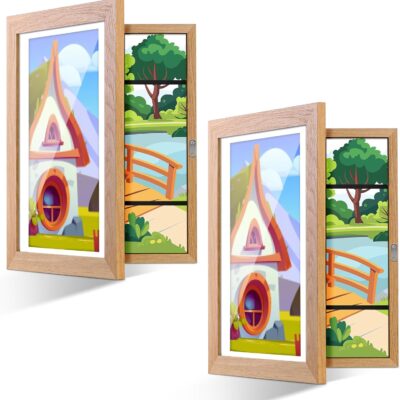 A4 Kids Artwork Display Frames – 2 Pcs Picture Frames for Childrens, Art Photo Frames Front Opening, 25X34cm Wooden A4 Frame with Holder, for Wall Art Display, A4 Box Frame, Living Room, Bedroom