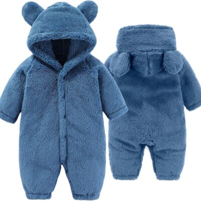 Yaopelky Newborn Baby Bear Snowsuit Infant Fleece Romper Baby Hooded Jumpsuit Winter Warm Outwear for Girls Boys 0-12M