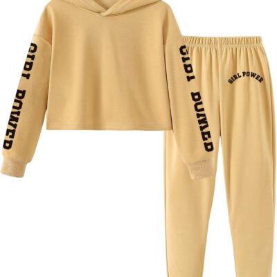 Xumplo Girl’s 2 Piece Outfits Tween Girls Long Sleeve Hoodie with Pants Clothes Set Teens Brown Casual Clothing