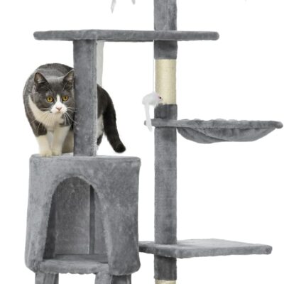 PawHut Cat Tree Kitty Activity Centre Scratching Post With Toys 5-tier Grey
