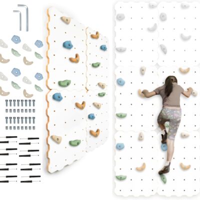 MAMOI® Climbing wall for kids, Wooden frame for toddlers, Play equipment with rock holds for toddler, Indoor baby and childrens frames from age 3 years old (White, 4 pieces – set)