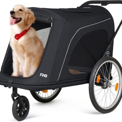 Beberoad R8 Foldable Pet Stroller, Dog Stroller & Pet Trailer for Large Dogs, Elderly, Disabled, and Pregnant Dogs – Conveniently Carriable by Bike and Car (Black)