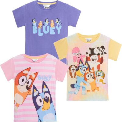 Bluey Girls 3 Pack T-Shirts for Kids Multipack Tees 100% Cotton Puppy Bingo Dress Up
