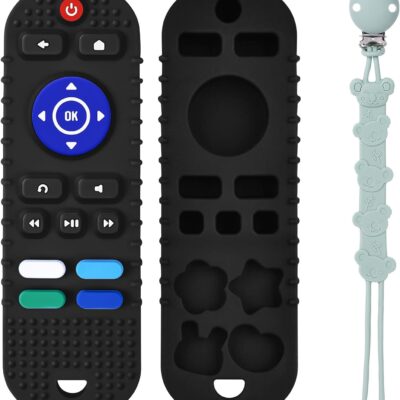 HOTUT Teether Toys for Babies,1pcs Silicone Baby Teething Toys Teethers for Babies Remote Control Shape+1PCS Silicone Pacifier Clip,Relief Soothe Babies Gums Set,BPA Free for 6 to 12 Months