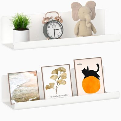 WELDUN Floating Shelves, Set of 2 Wall Mounted Shelf, Picture Ledge Display, Decorative Wall Shelves for Living Room, Bedroom, Bathroom, Kitchen, Home Office, Laundry room, Plastic, White