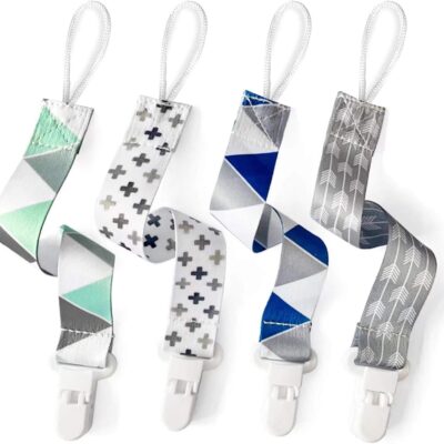 PandaEar Dummy Clips Baby Soother Chain Pacifier Clips Solid Color| 4 Pack Universal Holder Leash Soother Clips with Plastic Clasp for all Baby Teething Toys Teethers Soothers