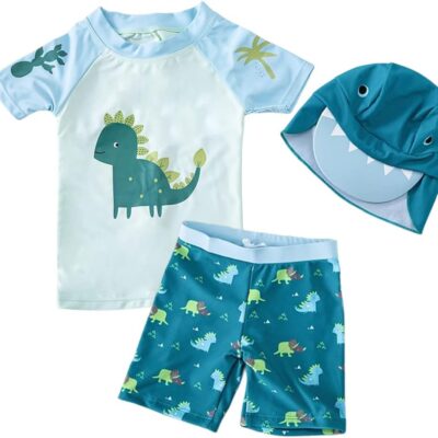 PythJooh Toddler Baby Boys Swimsuit Shark Dinosaur Two Pieces Swimwear Rash Guards Trunk Bathing Suits with Hat UPF 50+