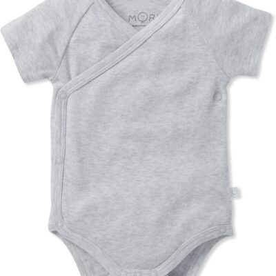 MORI Baby – Unisex Kimono Bodysuit – Short Sleeve-Organic Cotton and Bamboo – Breathable Infant Wrap-Style Bodysuit with Safe Nickel-Free Poppers