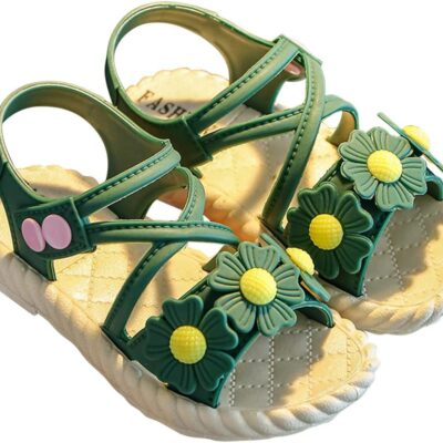 HAOLEI Baby Girls Sandals with Flower Open Toe Soft Sole Non-Slip PVC Sandals Comfort Summer Beach & Pool Shoes 2-10 Years
