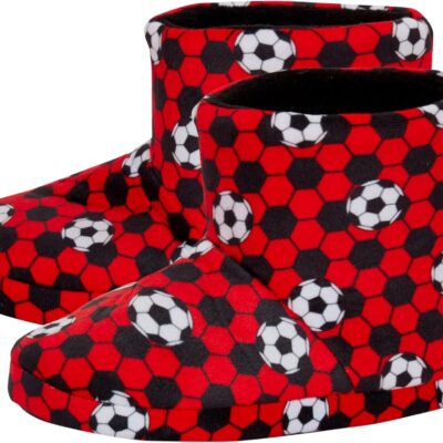 Kids Football Slipper Boots Boys Girls Fleece Lined Slippers House Shoe Booties