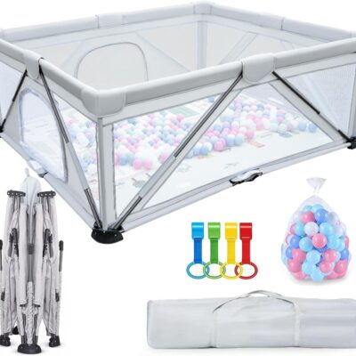 Baby Playpen Foldable, Large Play Yard,Playpen for Babies and Toddlers, Play Pens for Babies and Toddlers with Gate, Indoor & Outdoor Portable Play Pen