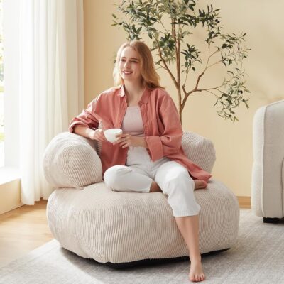 Bean Bag Chair for Adults and Teens Big Corduroy Floor Sofa Beanbag Chairs with Back Support Pillow Round Shaped Armrest Comfy Bubble Couch in Living Room, Bedroom