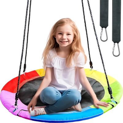 TURFEE Kid Nest Swing Seat 40″ Saucer Tree Swing Set for Children Indoor Outdoor,700Lb Weight Capacity, 900D Oxford Waterproof,Hanging Straps Swings for Kids& Adults Playground,Backyard(Rainbow)