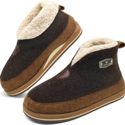 KuaiLu Mens Felt Winter Warm Boot Slippers Cosy Memory Foam Fleece Lined Bootie Slippers with Comfy Arch Support House Shoes Non-Slip Indoor Outdoor Hard Sole