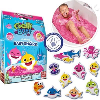Baby Shark Gelli Baff Pink with Free Floating 3D Bath Sticker from Zimpli Kids, 1 Bath or 6 Play Uses, Magically turns water into thick, colourful goo, Bathtub Toy Birthday Present for Boys & Girls