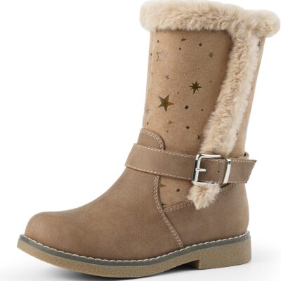 Harvest Land Girls Boots Kids Mid-Calf Boots Zipper School Shoes Big Kid Fashion Winter Boots Zip-up High-Top Flat Boots