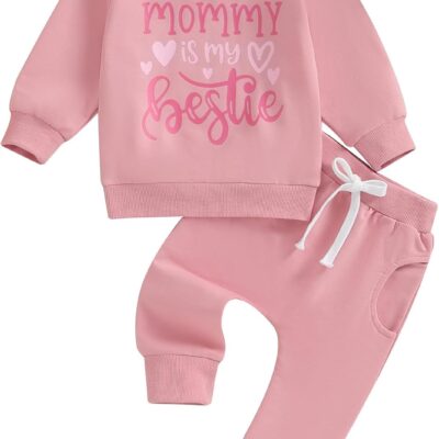 Vioyavo Toddler Baby Girls Spring Fall Outfit Letter&Heart Print Long Sleeve Sweatshirt Elastic Waist Trousers 2 Pieces Tracksuit Set