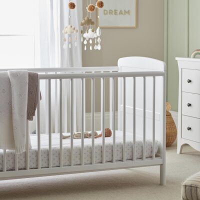 Juliet Baby Cot Bed – Wooden Convertible Cot Bed/toddler bed made with Pine Wood – Nursery Furniture with 3 Positions to grow with your Baby Safely – White