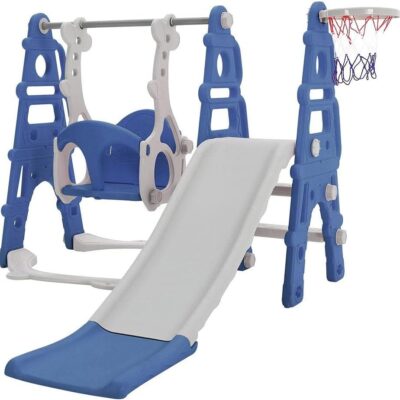 FUKEA Kids Slide, Large 4 in 1 Toddler Slide, Climber & Swing Set with Basketball Hoop, Garden Climbing Frames, Slide for Children Age 1-3 Indoor & Outdoor, for Kids (Blue)