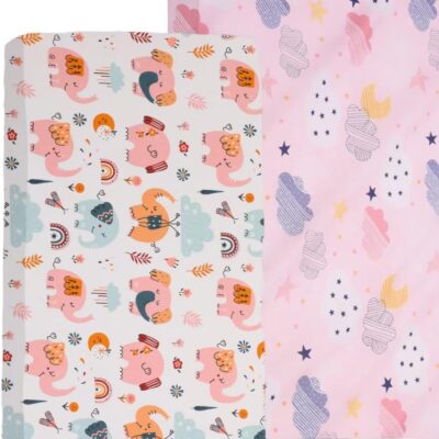 Baby Cot Bed Fitted Sheets 120 x 60 100% Cotton – Hypoallergenic Toddler Bed Sheet Fully Elasticated Skirt Breathable Easy Care – Junior Bed sheets Pack of 2