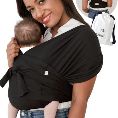 Konny Baby Carrier SoftBreeze – Custom Fit Carrier, Hassle-Free, Easy to Wear Infant Sling Wrap, Perfect for Newborn Babies up to 44 lbs Toddlers (Black, M)