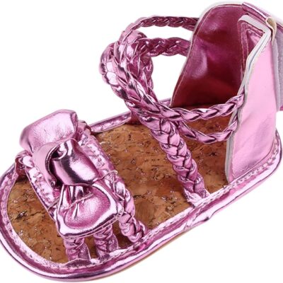 Baby Girls Leather Soft Gold Bow Gl𝐚diator Sandals Open Toe Sequins Toddler Ankle Summer Shoes Flat Walking Wide Shoes Baby Girl Sandals Size 4 Wide Flip Flops For Girls(