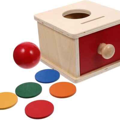 Toyvian Montessori Wooden Toys, 2 in 1 Montessori Object Permanence Box Ball Drop Toy Montessori Coin Box with Drawer for Infant Babies Toddlers