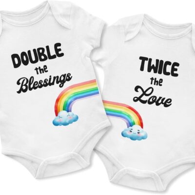 Double The Blessings Twice The Love Matching Babygrow Set Boy Girl Twins Baby Vest