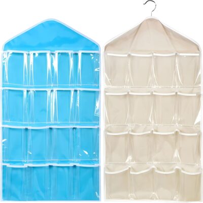 Mein HERZ 2pcs Over Door Hanging Bag,【16 Pockets】 Storage Organiser, Pockets Clear Over Door Hanging Bag Shoe Rack Hanger Underwear Bra Socks Closet Storage Organizer (Grey/Blue)