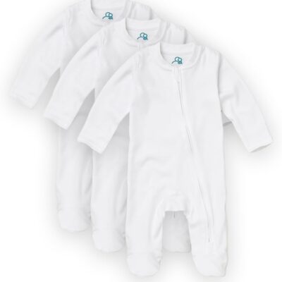Sproot Baby | Premium Organic Cotton Sleepsuits | 3 Pack, 3-6 Months | Unisex Baby Nightwear with 2-Way Zip & Mittens | Soft Baby & Toddler Pajamas for Easy Changing in White