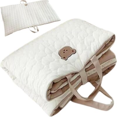 Baby Changing Pad, Foldable Portable Changing Pad, Double Side Cotton Diaper Changing Mat with Handle and Snap Button, Travel Portable Changing Mat for Newborn Baby Girl & Boy, Portable Changing Pad