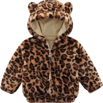 ESHOO Baby Girls Boys Fleece Leopard Jacket Toddler Cute Bear Hooded Coat Warm Winter Outwear Zip Up Fuzzy Plush Hoodie Sweatshirt For Kids Fall Winter Outfits 2t 3t 4t 5t 6t 7t